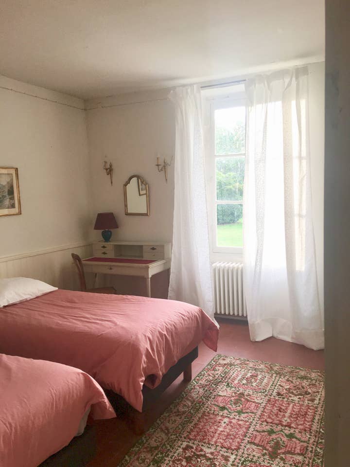 Chambre des roses roses : Deux lits simples (transformables en lit double) , une salle de bain ( wc & baignoire )